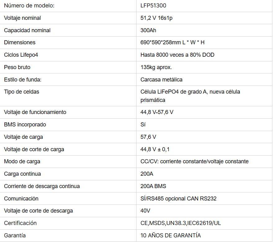 Batería Solar LiFePO4 15 kW 300Ah / 51.2V Nueva...