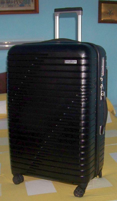 Se vende una maleta de viaje negra, nueva, ligera, moderna, de 4 ruedas, de policarbonato, marca "Royal Class Travel Line". Dimensiones: 77 x 30 x 50 cm. Precio: 8000 CUP.