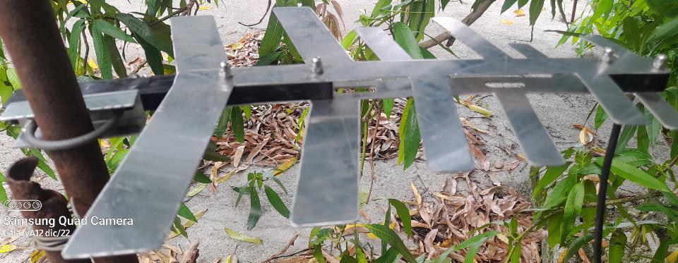 Antena para la TV digital "Logperiodica" de exteriores, es robusta, sin partes móviles y con su conector F (hembra) de tv.